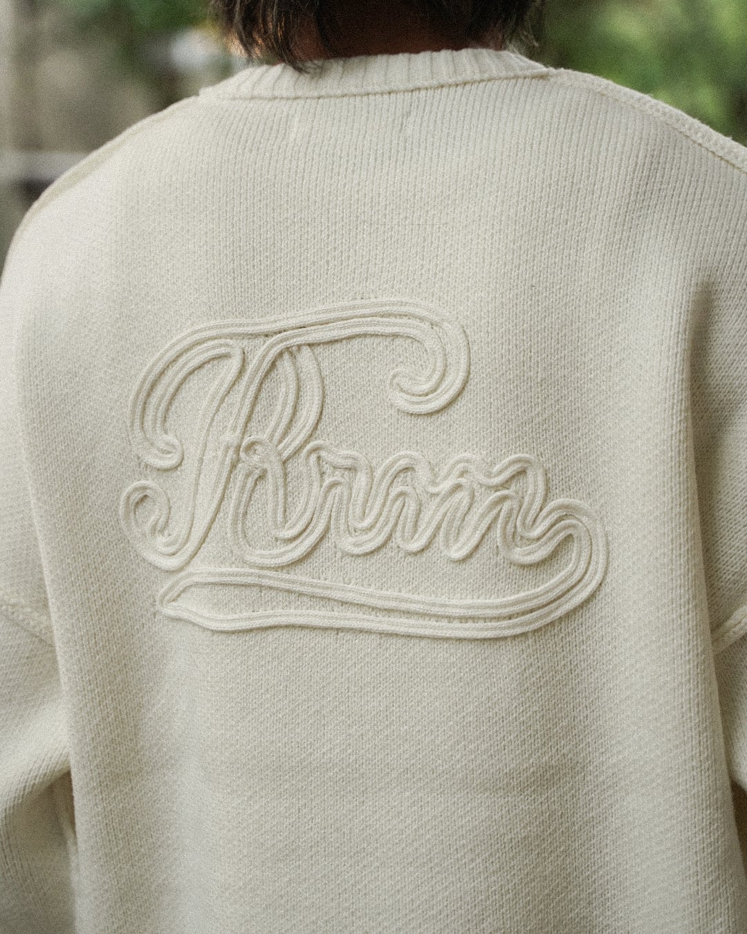 ・RRワッペンをフロントに施した、シンプルで飽きのこない大人なクルーネックニット。