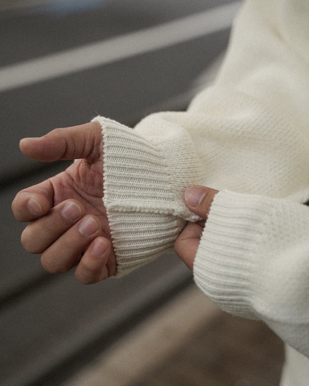 ・柔らかく肌触りの良いニット素材を採用し、チクチクしにくく快適な着心地。