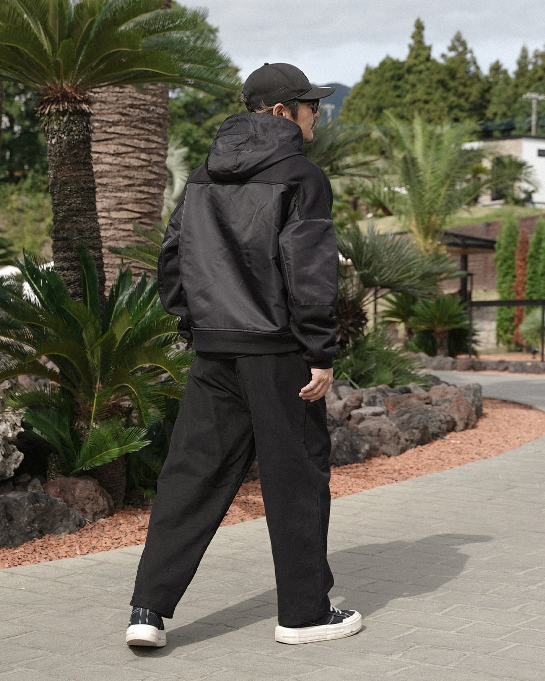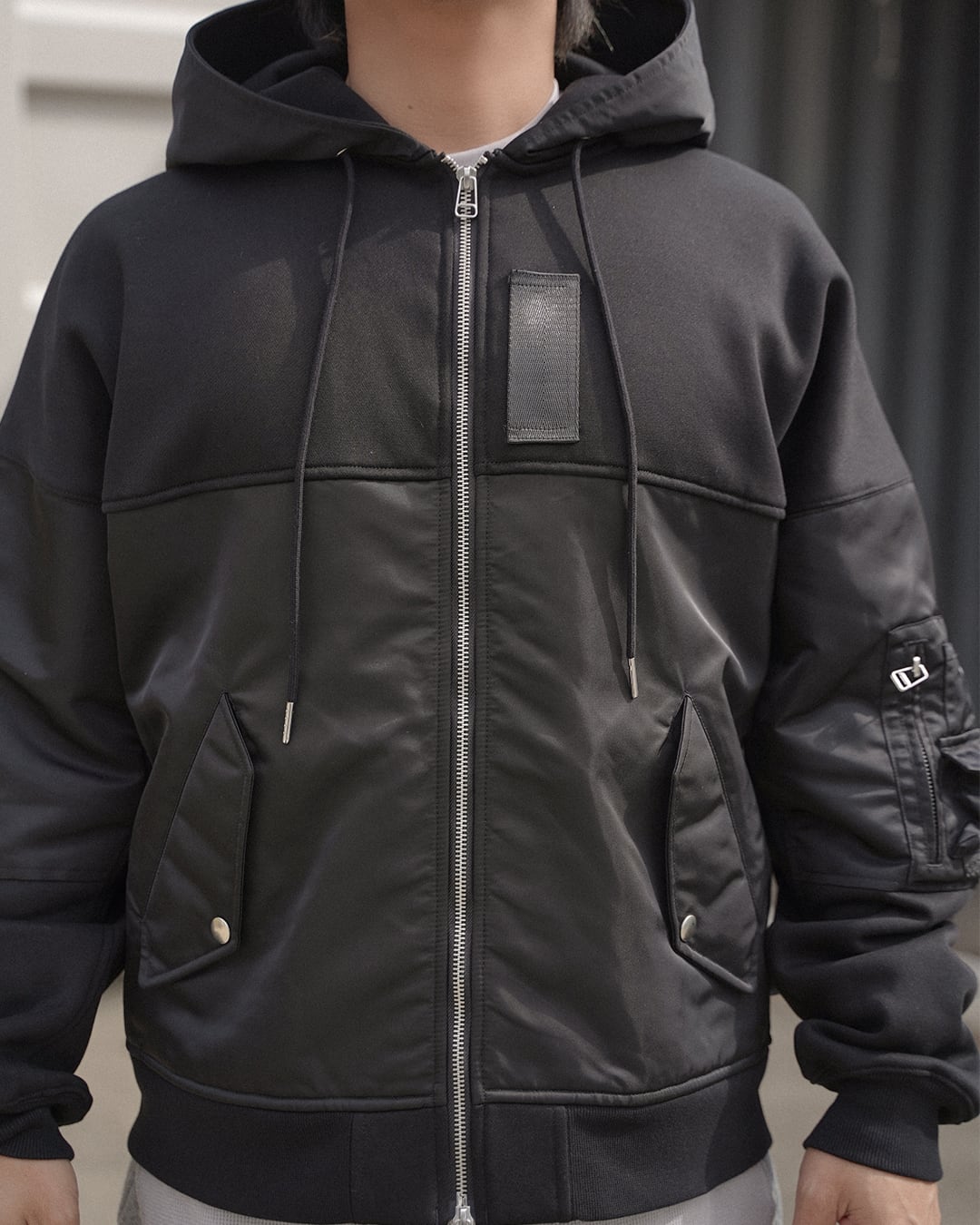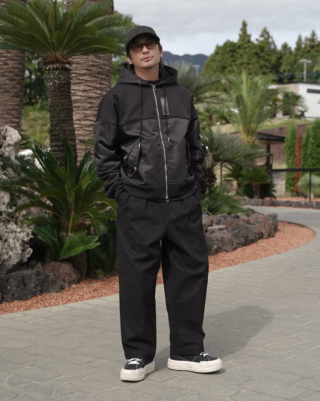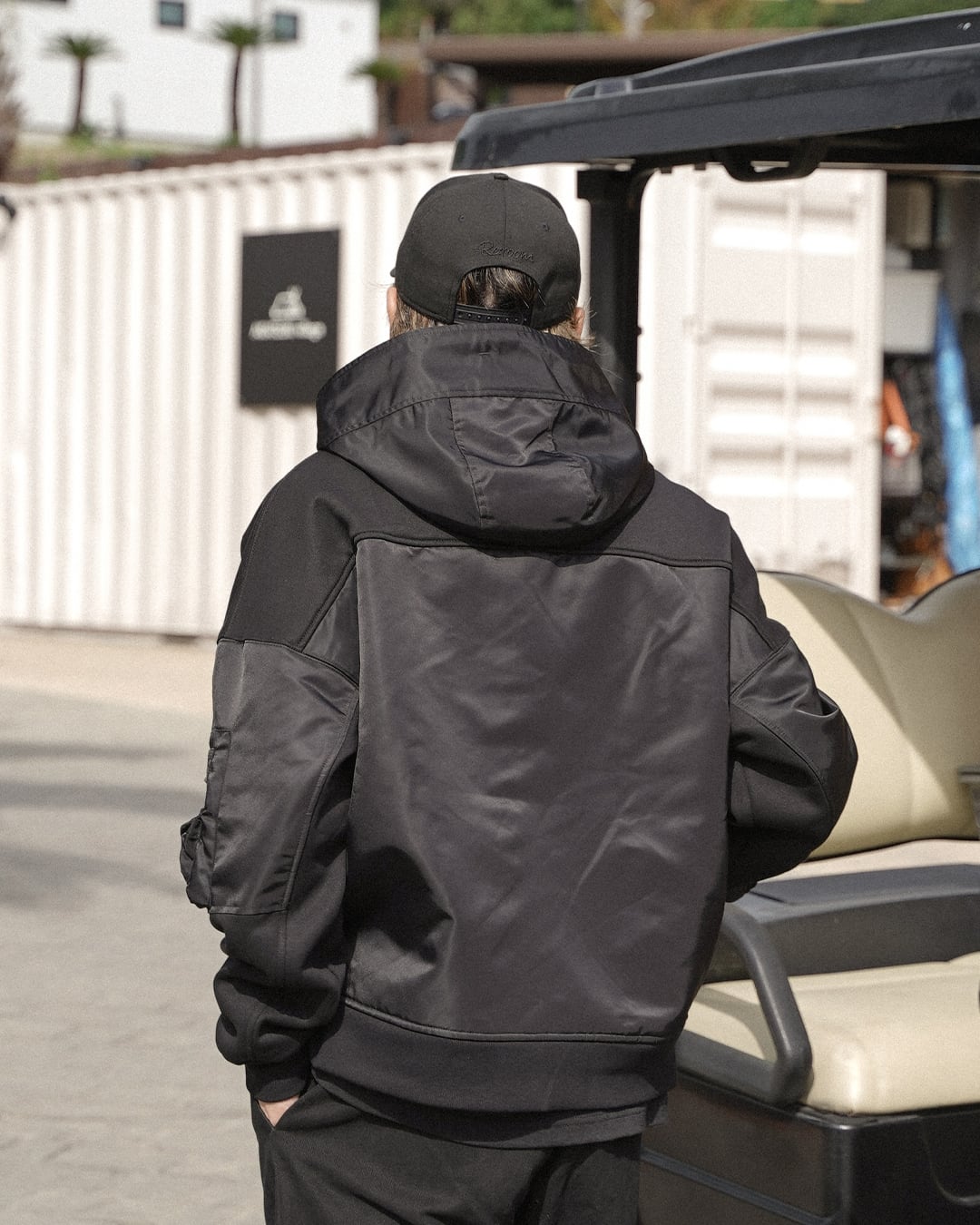 ・袖やフードなど切り替え部分にはナイロンツイル素材を使用し、程よい光沢感と立体的なデザインアクセントをプラス。