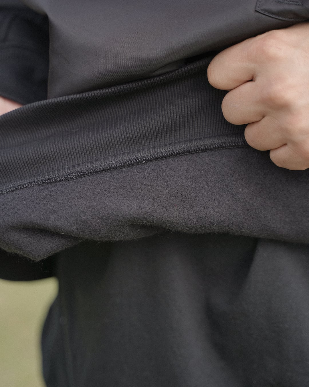 ・メインは裏起毛仕様のスウェット素材で、柔らかく保温性に優れた着心地。