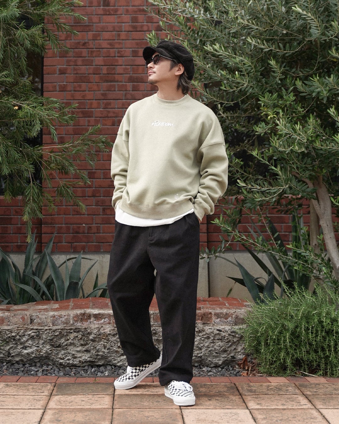・同素材のTUCK WIDE SWEAT PANTS[REP302]とセットアップ着用可能。