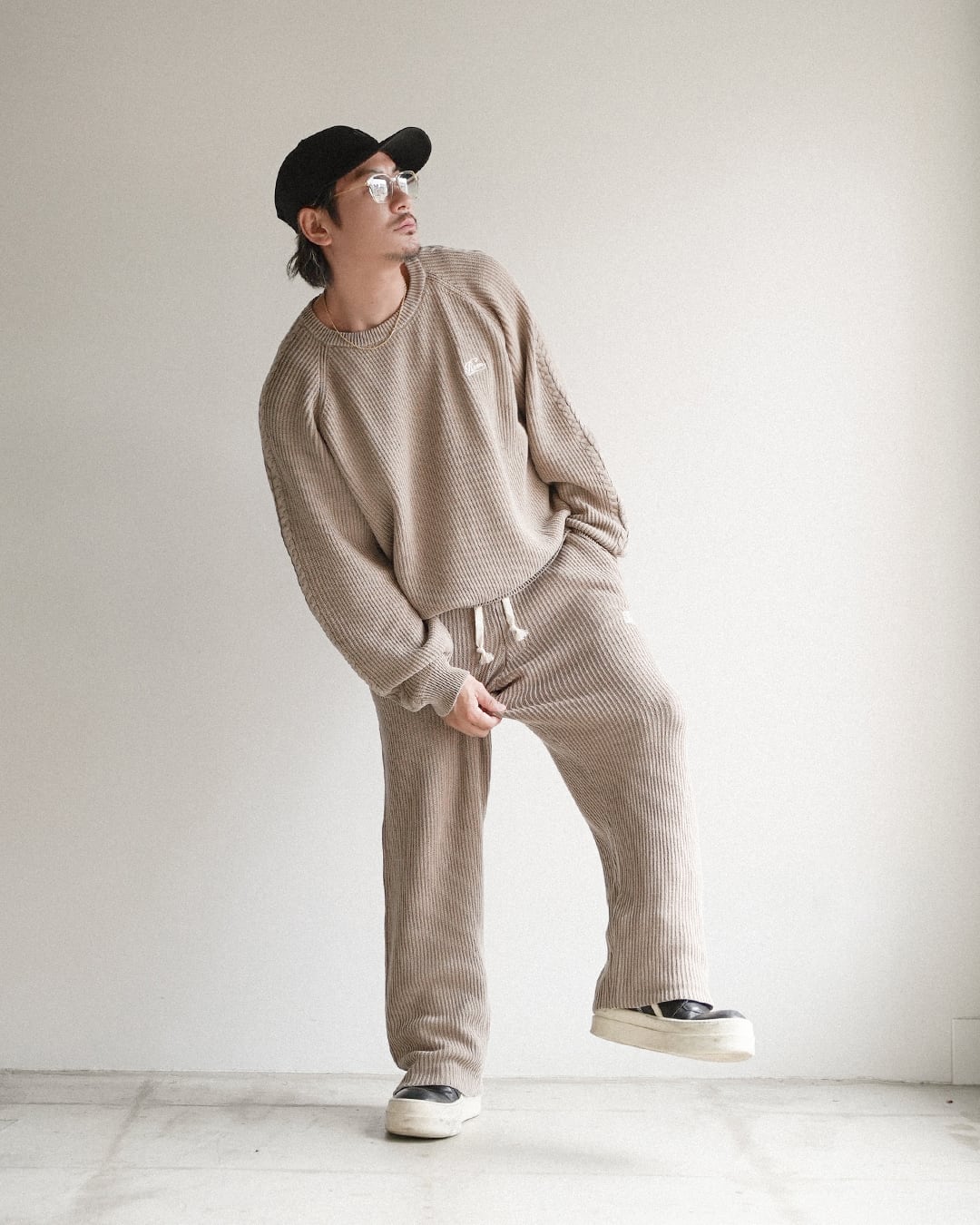 ・同素材のWASHED COLOR CREW NECK KNIT[REK160]とセットアップで着用可能。