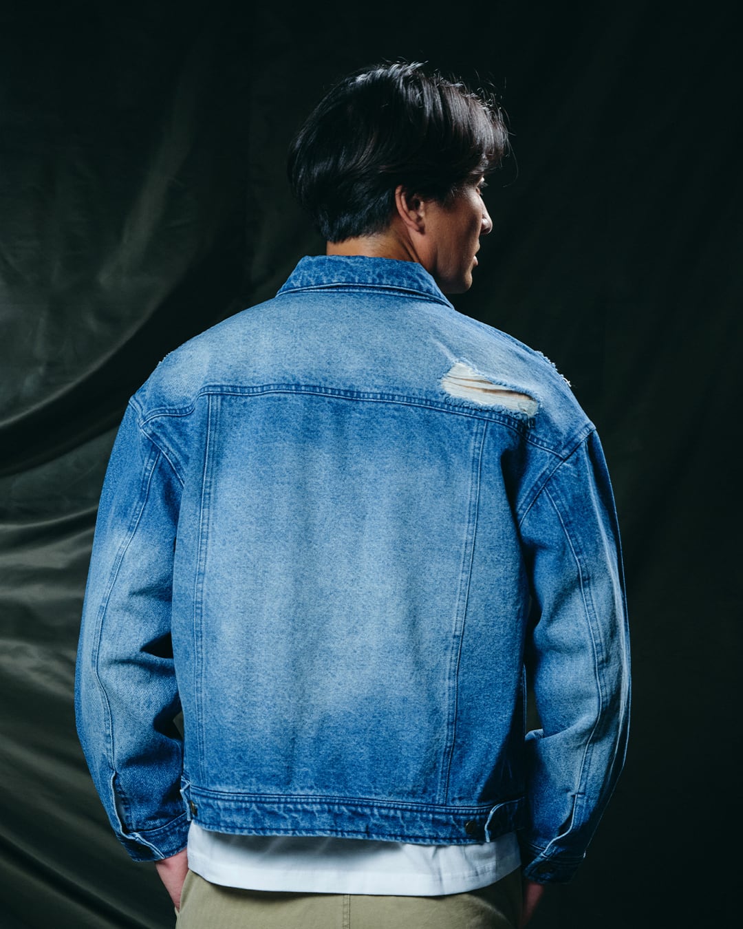 ・全体に施したウォッシュ加工やダメージ加工が、ヴィンテージライクな表情を演出。