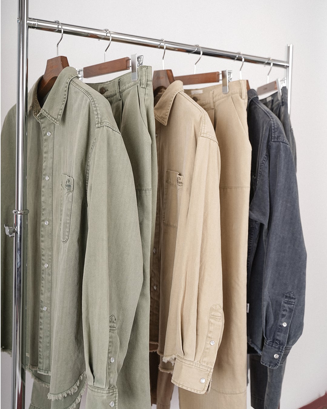 ・同生地を使用した「VINTAGE WASHED COLOR TUCK WIDE PANTS」とのセットアップスタイルも可能。