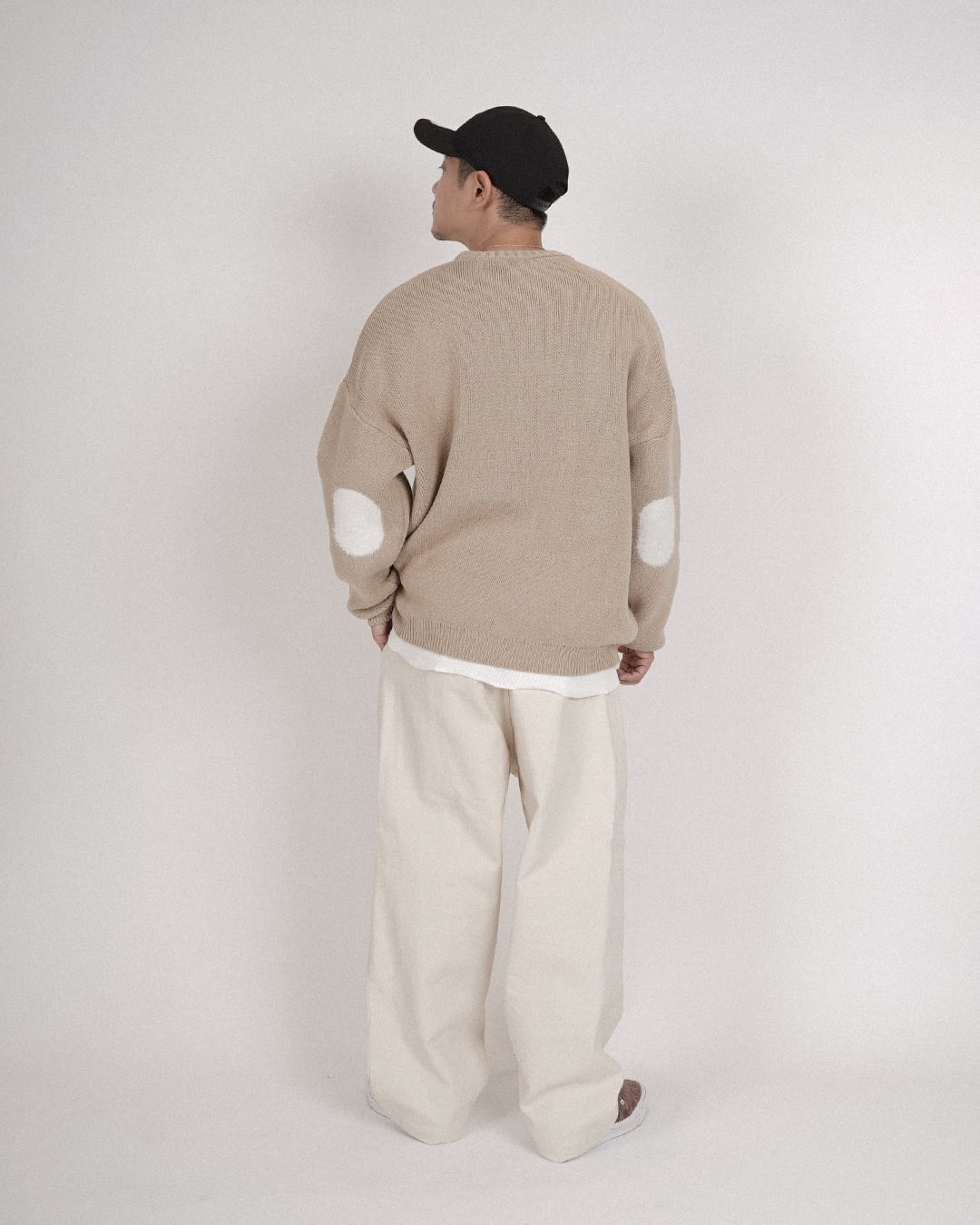 ・肘部分にもシャギーのパッチワークを施し、さりげないアクセントに