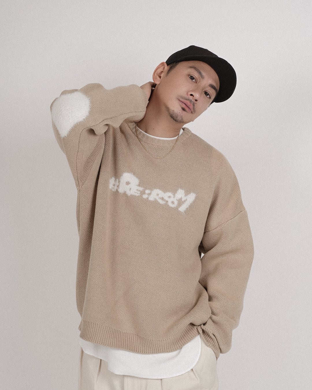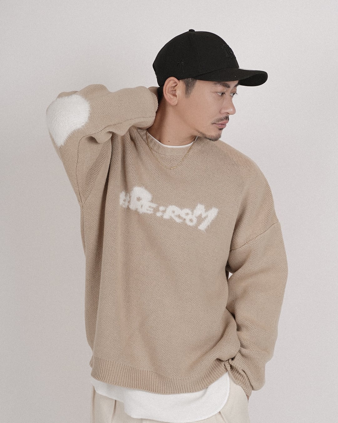 【シャギーロゴクルーニット】
