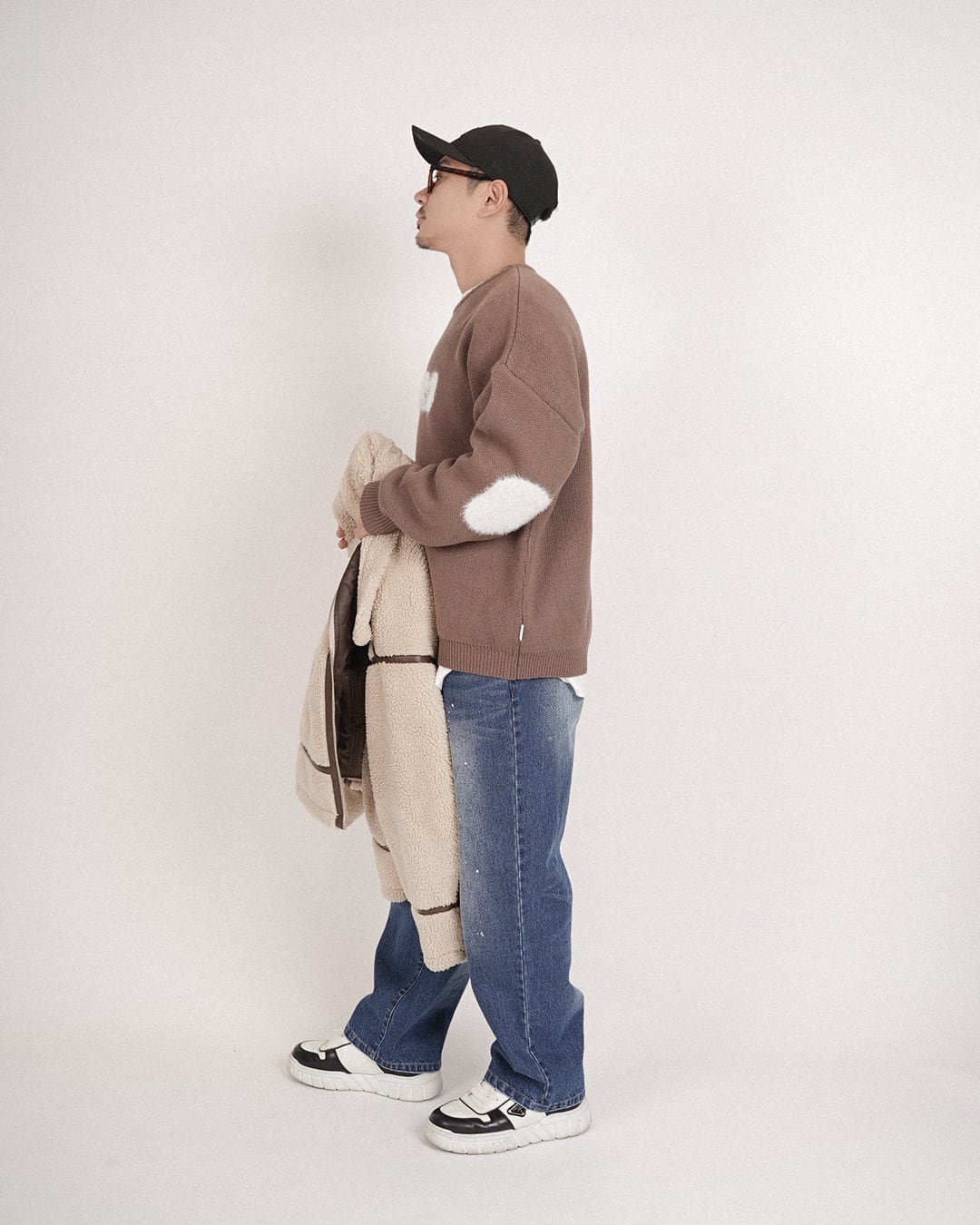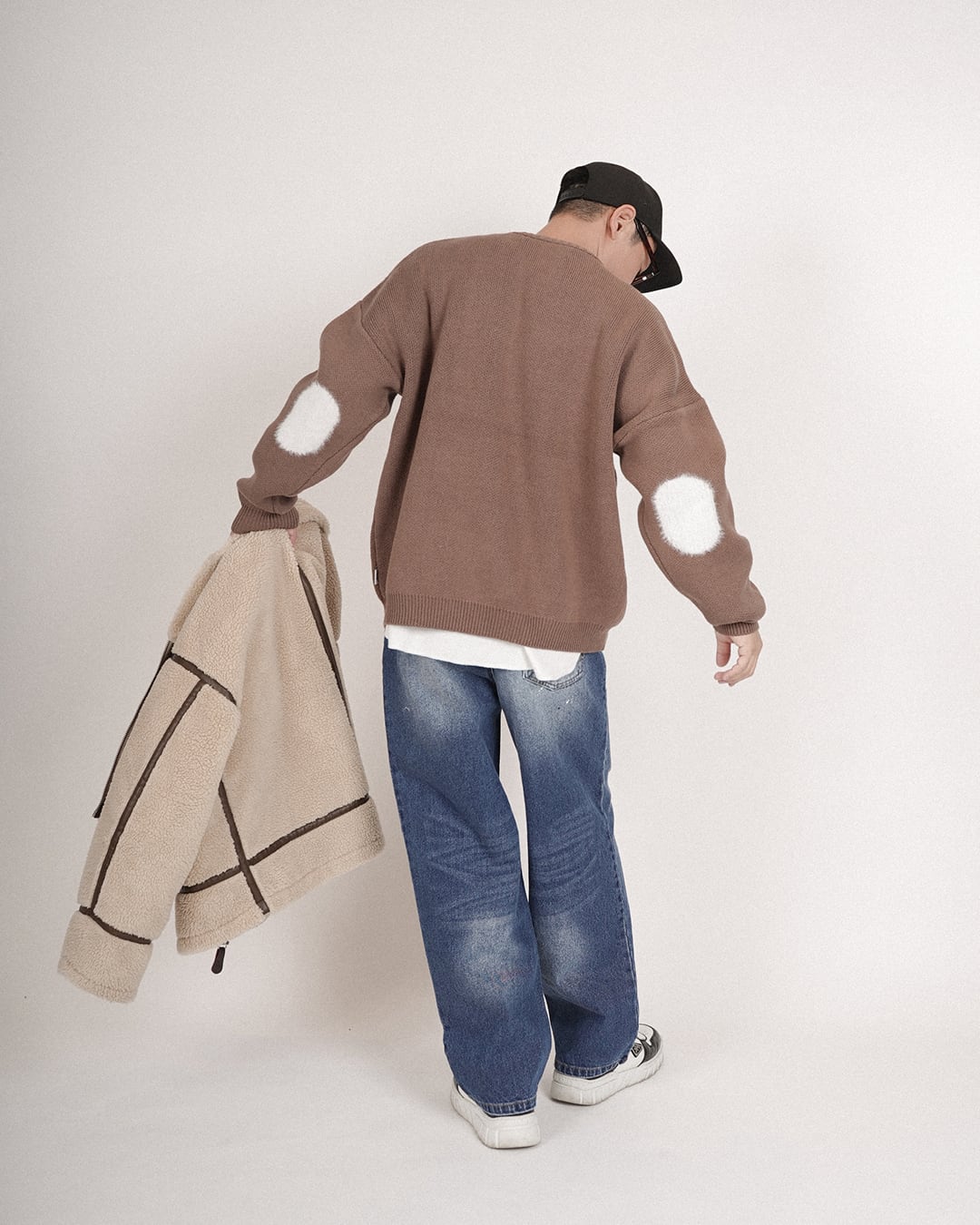 ・肘部分にもシャギーのパッチワークを施し、さりげないアクセントに