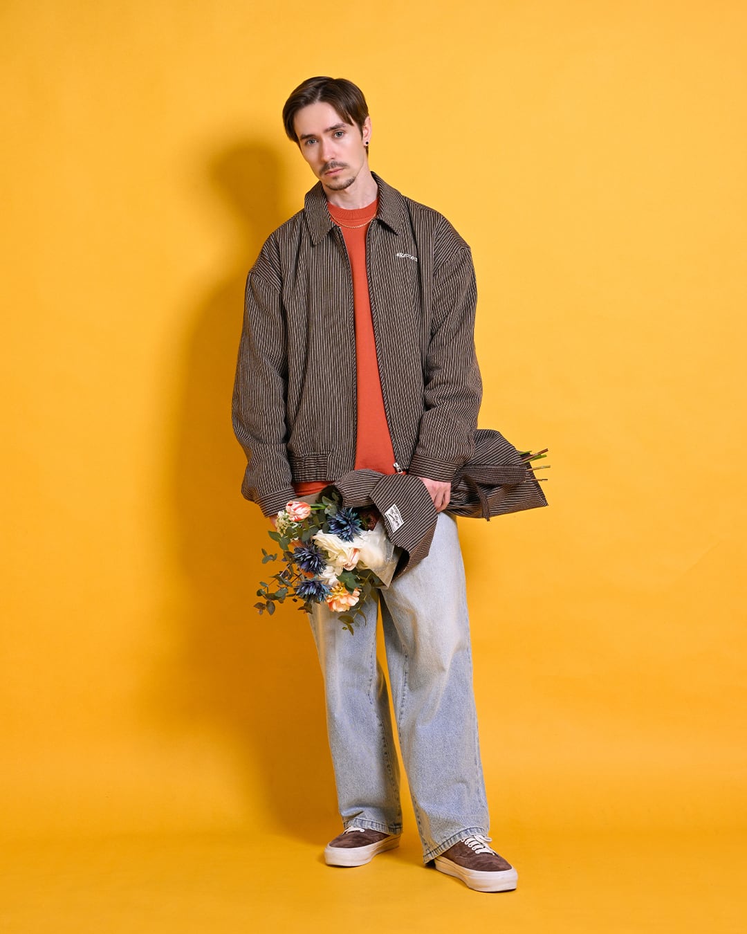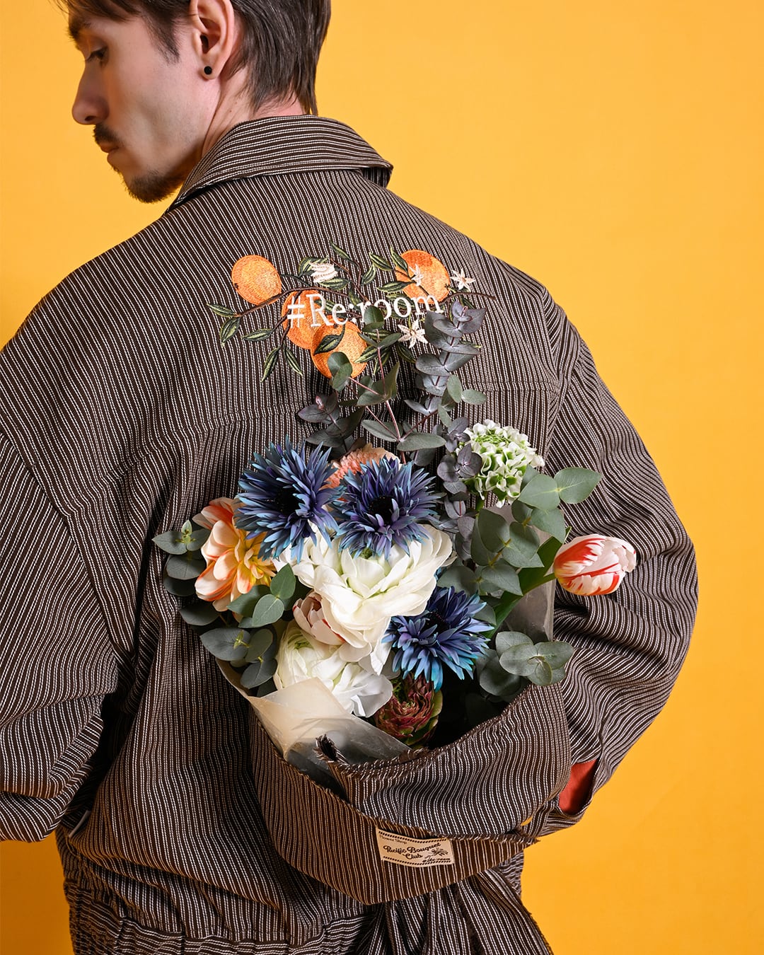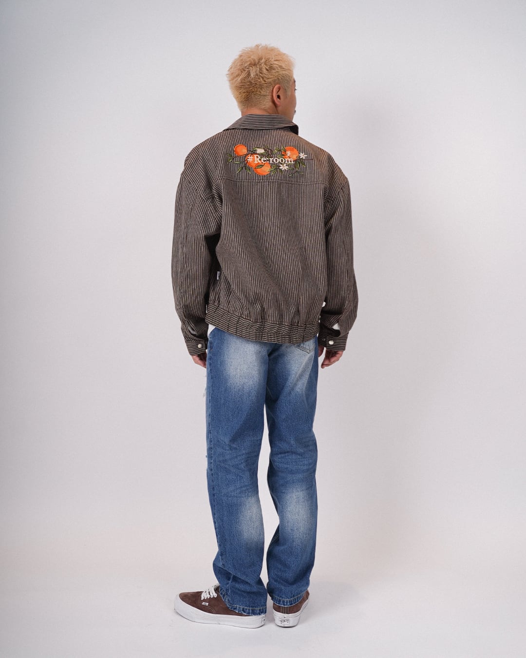 【#Re:room】ORANGE FLOWER EMBROIDERY STRIPE JACKET[REJ146]