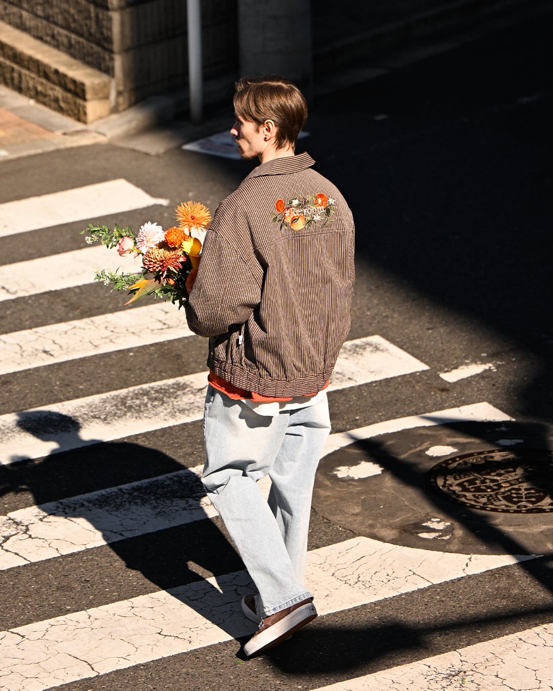 【オレンジフラワーエンブロイダリーストライプジャケット】