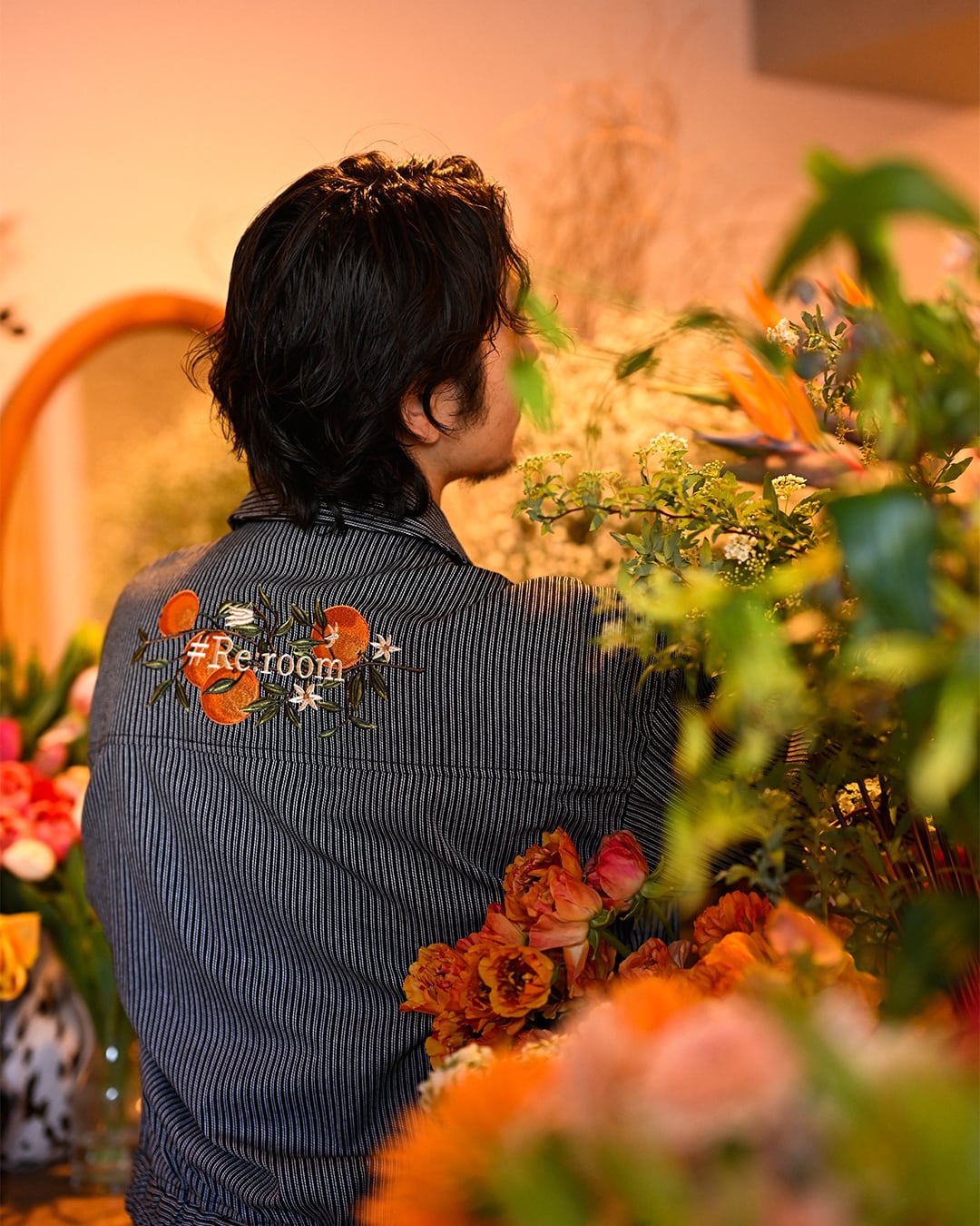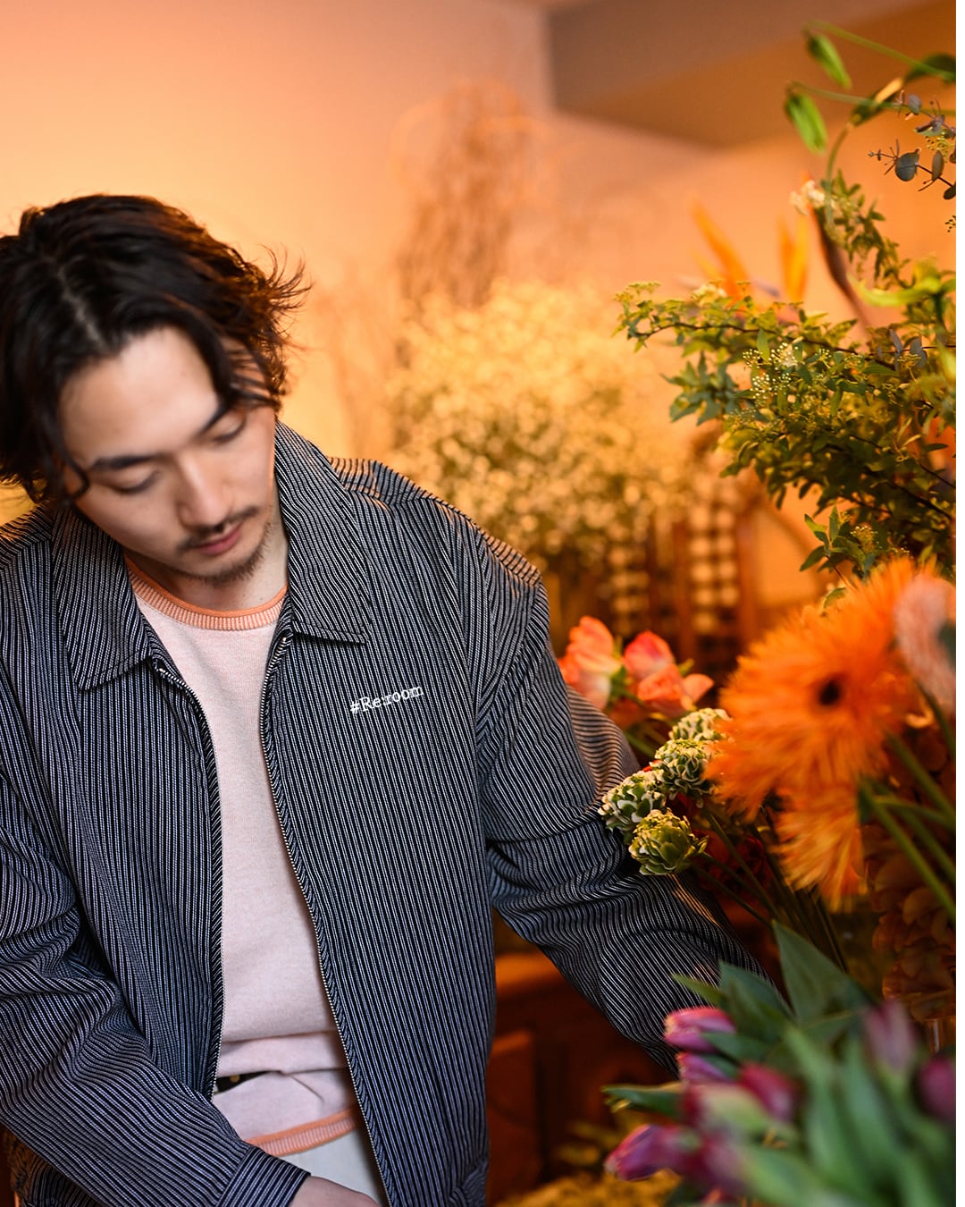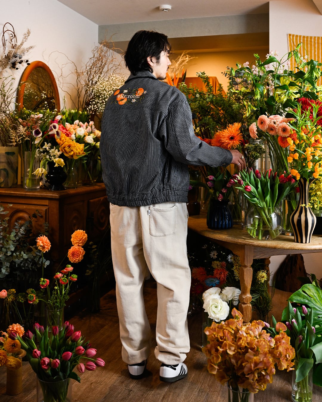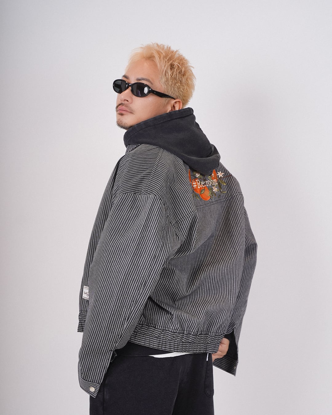 【#Re:room】ORANGE FLOWER EMBROIDERY STRIPE JACKET[REJ146]