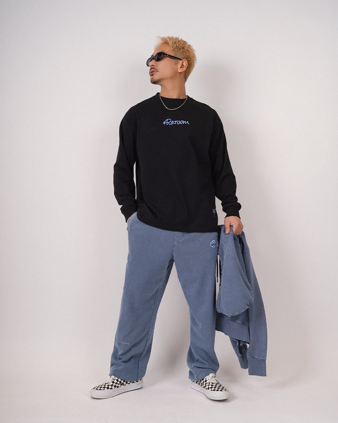 【フラワーワッペンウォッシュドスウェットパンツ】