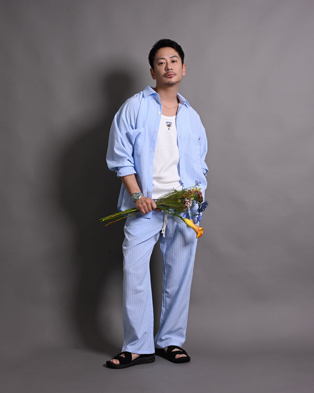 ・BOUQUET PRINT STRIPE SHIRTS[RES125]とセットアップで着用可能