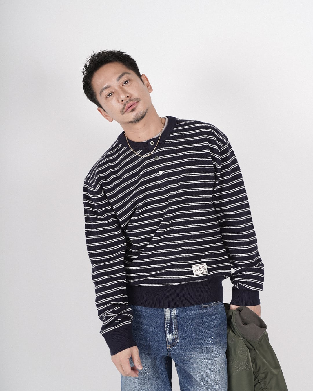 【#Re:room】HENLEY NECK BORDER CREW KNIT[REK166]