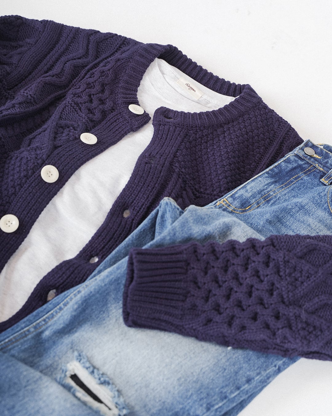 【#Re:room】CREW NECK CABLE CARDIGAN[REK168]