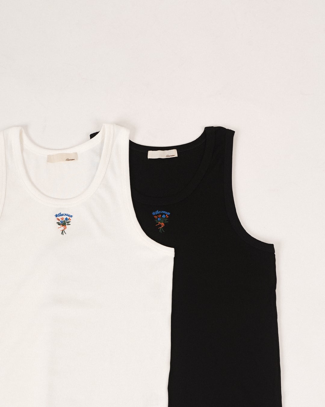 ・フロントにブーケロゴ刺繍を施したタンクトップ