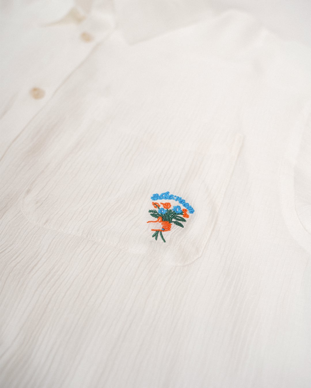 ・胸元にはブーケ刺繍を施し、さりげないアクセントに