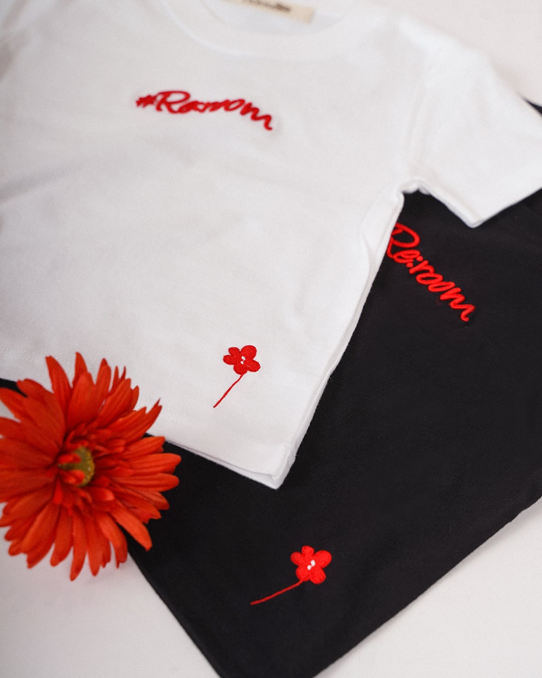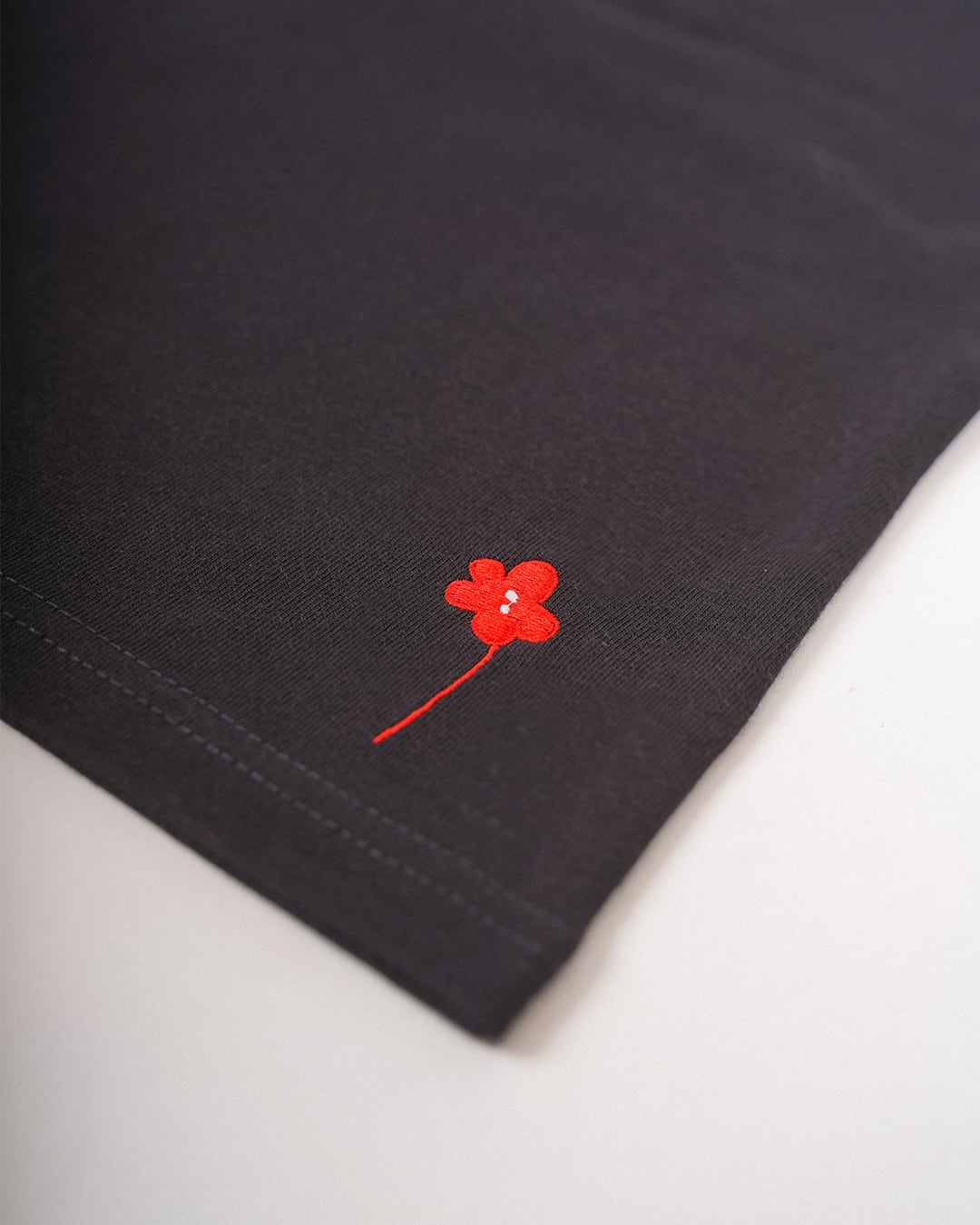 ・裾には一輪のフラワー刺繍をあしらい、さりげない可愛らしさをプラス