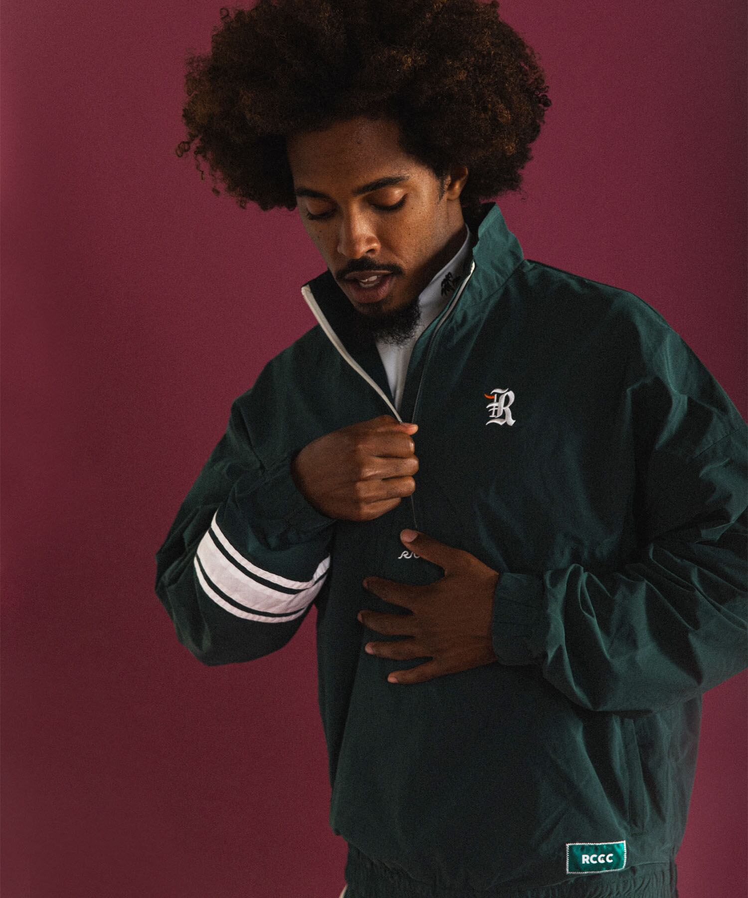 ・アクティブに着こなせるハーフジップ仕様のジャケット。