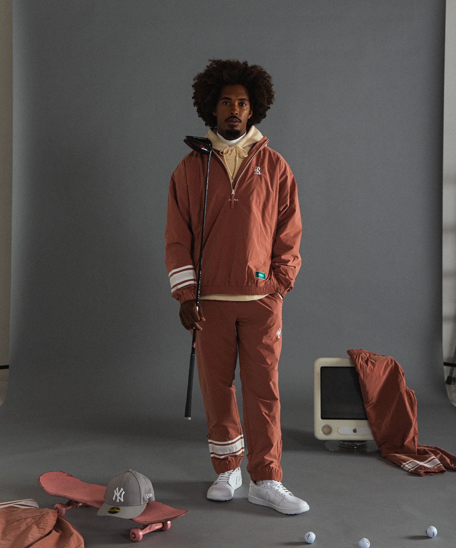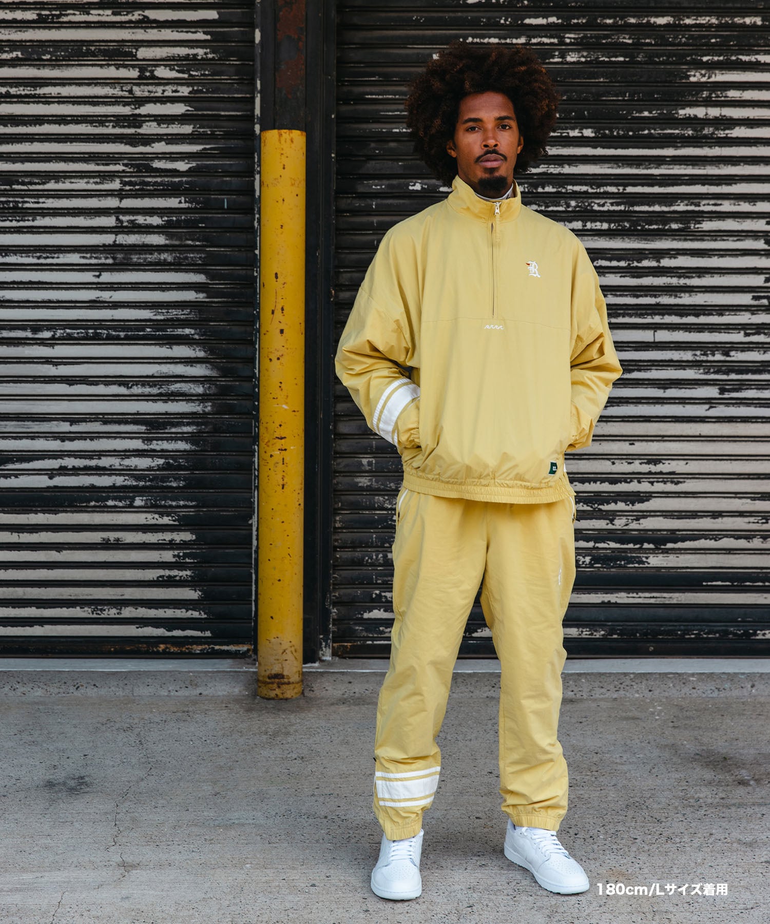 ・同生地を使用したナイロンカラープールオーバージャケットとセットアップでの着用もおすすめです。