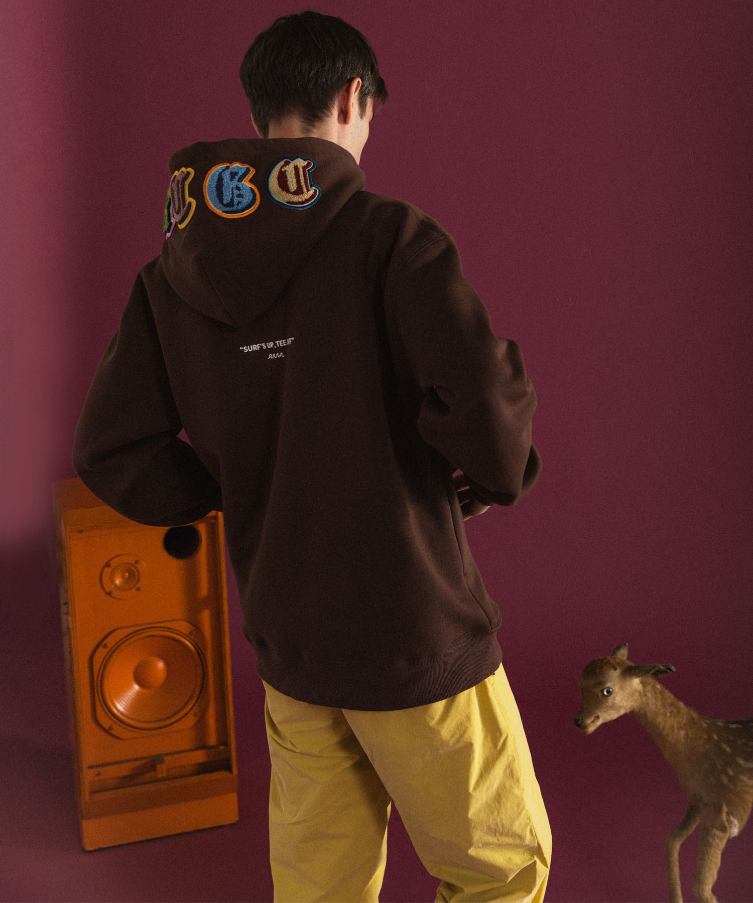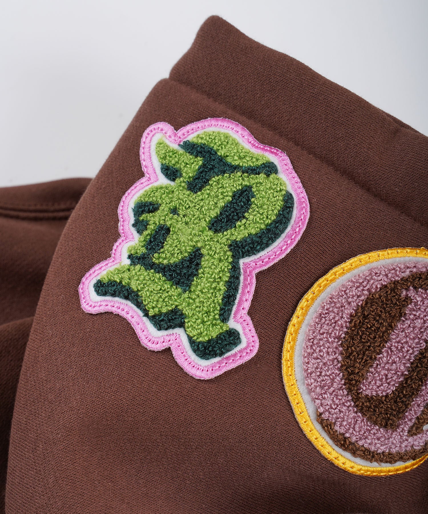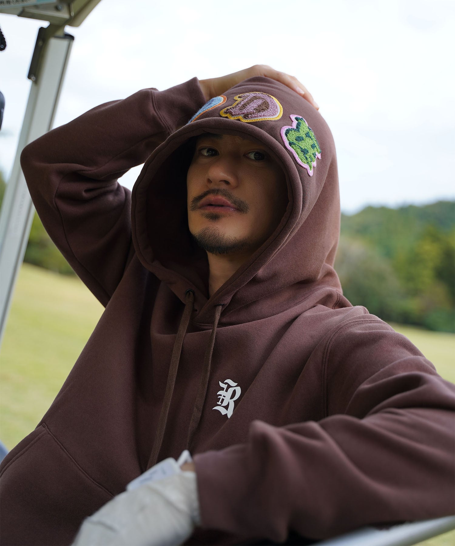 ・フードに施されたワッペンデザインがインパクトのあるロゴフーディ。
