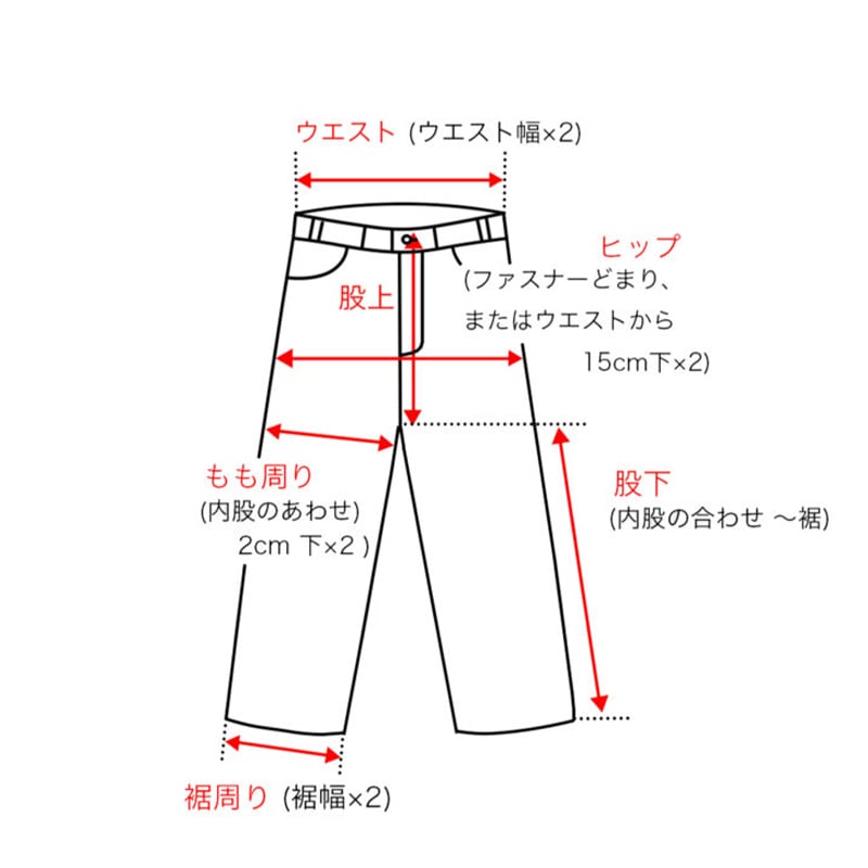 ウエスト/82 ヒップ/96 股上/29 股下/71.5 裾周り/34