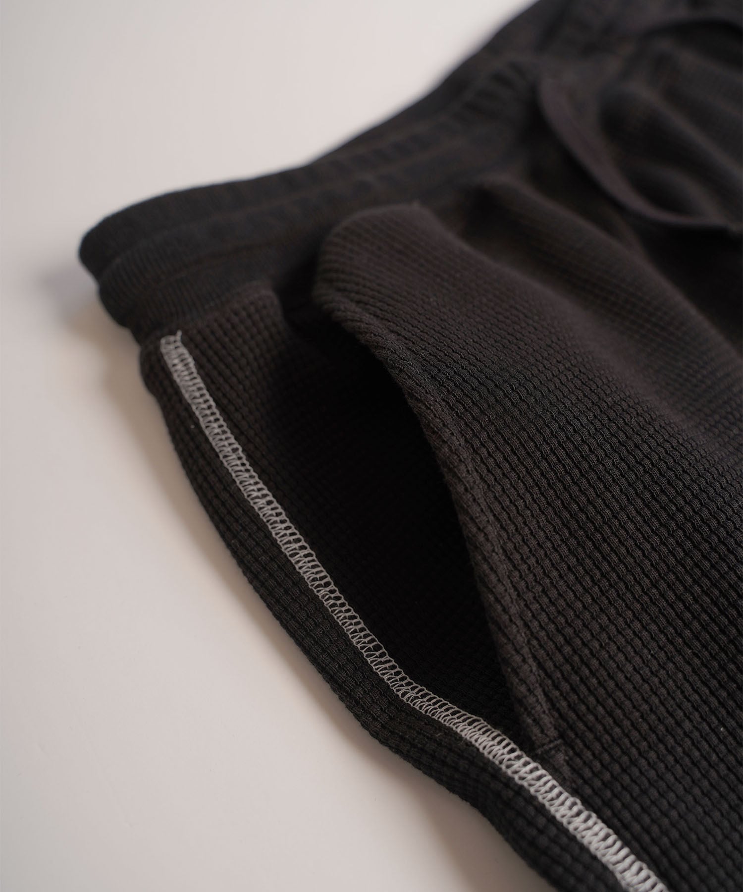 ・ワッフル生地の凹凸感とステッチがスタイリングのポイントに。