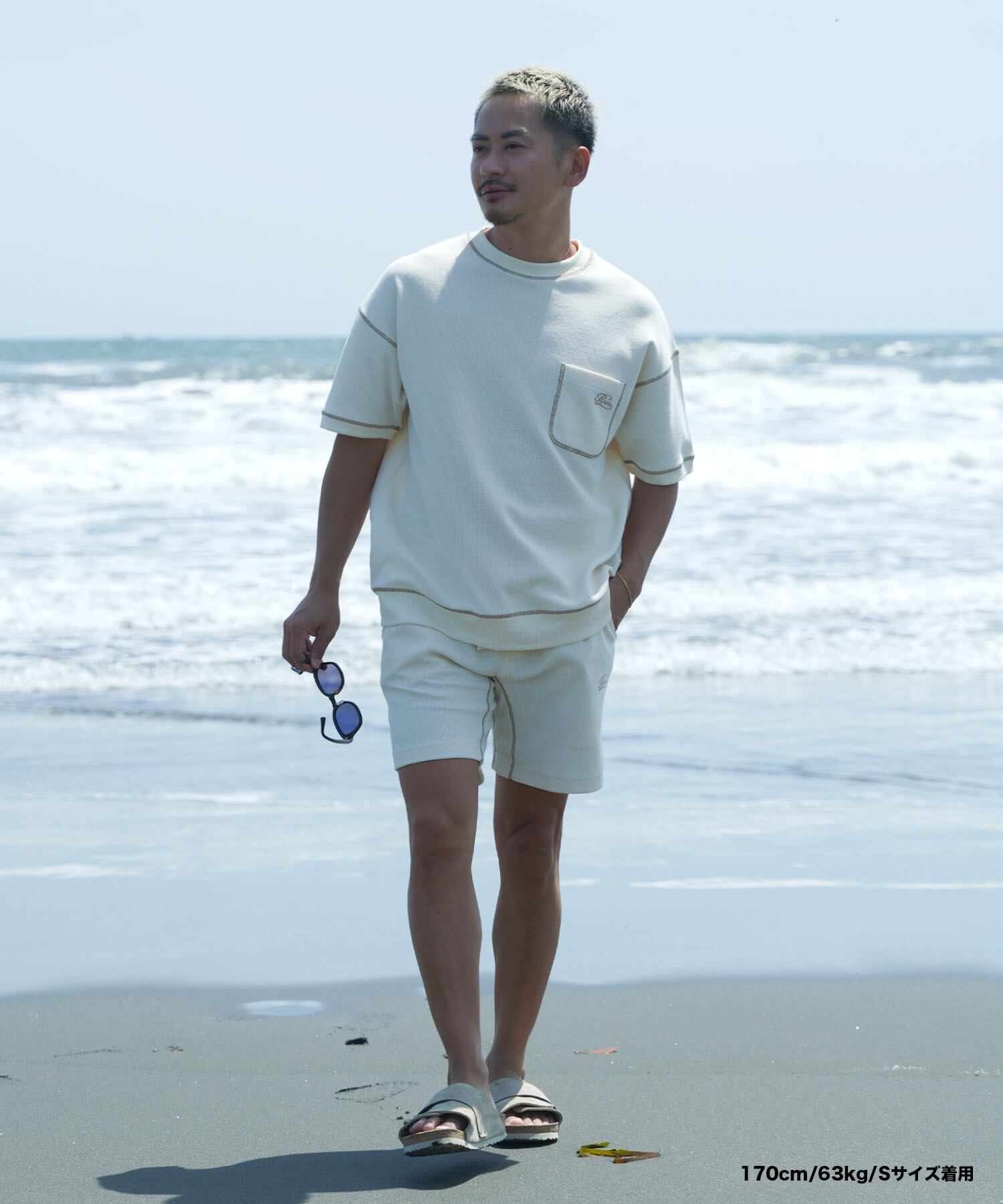 ・同生地を使用したカラーステッチワッフルビッグTシャツとセットアップで着用していただけます。